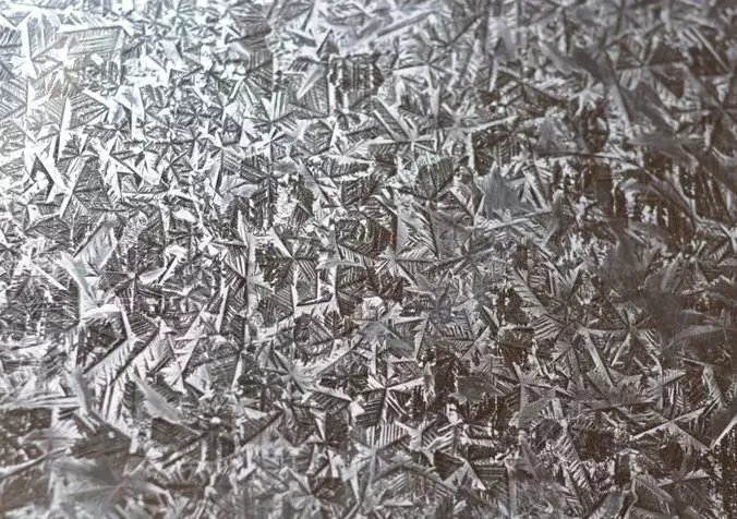 帶有美麗鋅花是傳統熱鍍鋅板的一個主要特征。鋅的結晶體最完整的形態近似于雪花或六角星形,因此通過熱鍍工藝帶鋼表面上冷凝獲得的鋅晶體最可能形成雪花或六角星形鋅花。