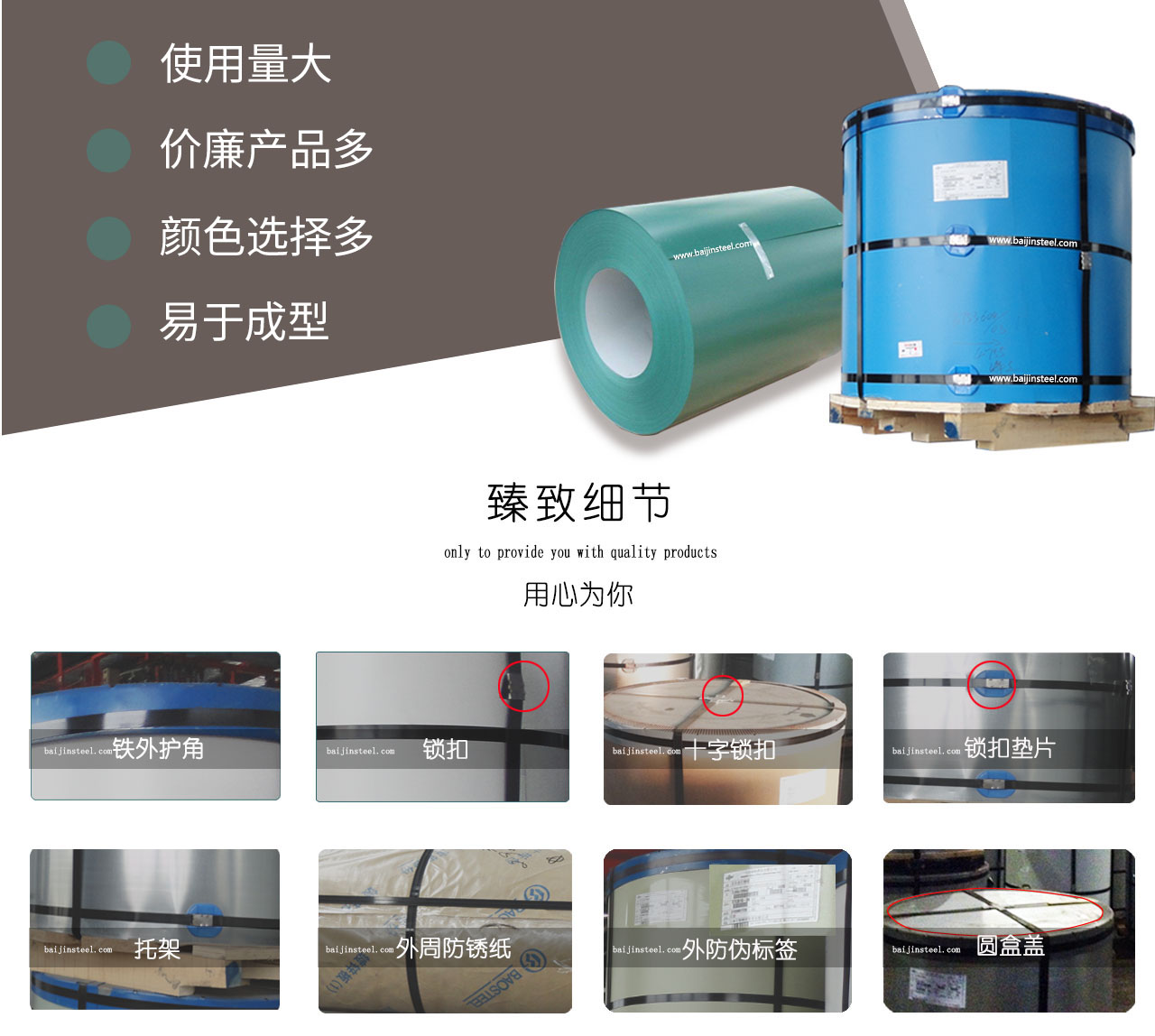 PE涂料對于材質有良好的附件著性,彩涂鋼板易于加工成型,價廉且產品多,顏色和光澤的選擇余地大。在一般環境直接曝露下,基防蝕年可長達7-8年,但于工業環境或污染嚴重的地區,其使用壽命會相對降低,且聚脂涂料對耐紫外光性與涂膜耐燁化性,并不理想,因此PE涂料的使用仍受到若干限制,一般用在空氣污染不嚴重的地區或需多次成型加工的產品。寶鋼PE聚酯彩涂板在一般環境下具有7年的質保年限。